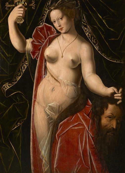 Exémplum secúndum Ambrosius Benson (Lombardia, c. 1495 - Brugge, 1550), Judith tenens Holoférnis caput, 1530-1533, Grenoble, Musée de Grenoble-J.L. Lacroix, Inv. : MG 1290. Oleo in lígneo, 98,2×71,1 cm. |