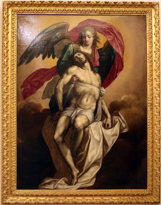 Jacob de Backer (Antwerpen, c. 1545 - Ibid., 1585), Christus mórtuus ab ángelo sustentátus IT Cristo morto sorretto da un angelo, 1575-85, Roma, Galleria nazionale d'arte antica. |