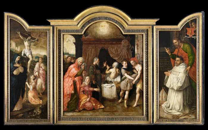 Jacob de Backer (Antwerpen, c. 1545 - Ibid., 1585), Tríptycha a prædictióne curatiónis Ezechíæ NL Drieluk met de voorspelling van Hizkia’s genezing., XVI s., Gent, Museum voor Schone Kunsten (MSK), Inv. S-94. Oleo, 178 x 67 cm. |