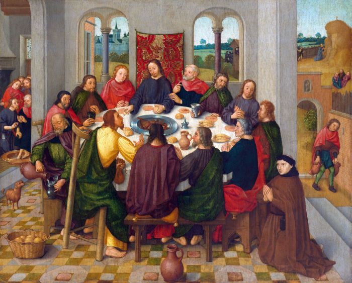 | Pictor Mortis Vírginis Amstelodámi, Círculus, NL omgeving van Meester van de Amsterdamse Dood van Maria (Batávia), Cœna Dómini NL Het laatste avondmaal, c. 1485 - c. 1500, Amsterdam, Rijksmuseum, Inv. SK-A-2129. Oleo in týmpano, 51,7×63,5 cm. |