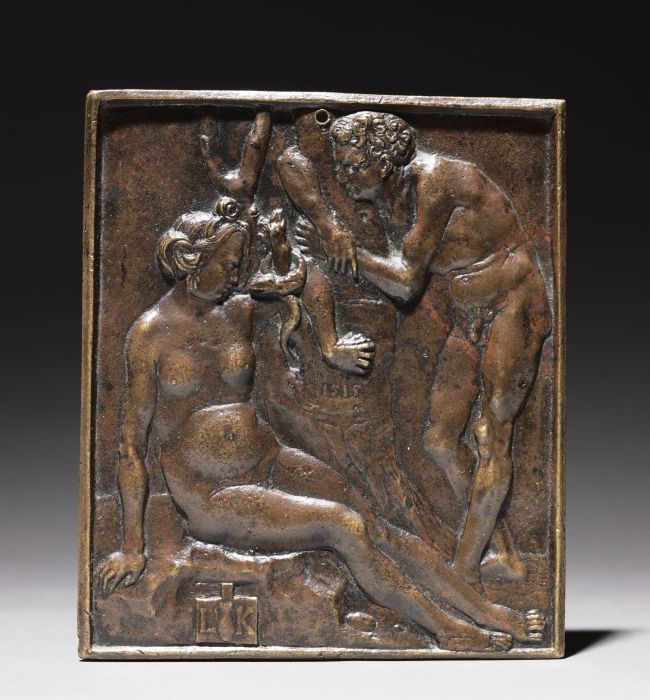 Ludwig Krug (Germánia, agens Nürnberg, 1488 – 1532), Lapsus Adæ et Evæ EN Adam and Eve, 1518, Cleveland (USA, Ohio), Cleveland Museum of Art, Inv. 1948.359. Bronze, 12,7×10,8 cm. |