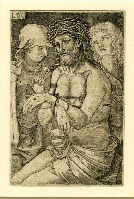 Ludwig Krug (1488-1532), Imago pietátis inter Maríam et Joánnem EN Christ as the Man of Sorrows with the Virgin and St John; inter 1510 et 1532, London, British Museum, Inv. 1929,0211.3. Cælatúra, 120x78 mm. |