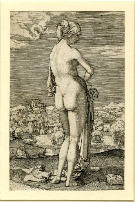 Ludwig Krug (Germánia, agens Nürnberg, 1488 – 1532), Múlier ad bálneas EN A woman bathing, inter 1510 et 1532. Exempla : London, British Museum, Inv. 1845,0809.1049. |