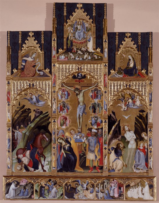 Gherardo di Jacopo, 'Starnina', attribútio (fl. 1398-1409), ES Retablo de los Sacramentos, inter c. 1396 et c. 1398, Valencia, Museo de Bellas Artes, Inv. 246. Tempera in tábula, 248×191 cm. |