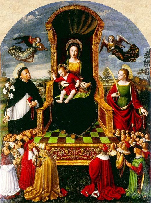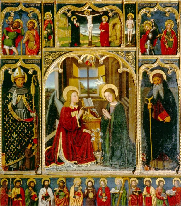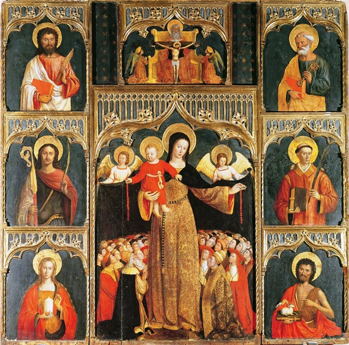 Louis Bréa (Nissa, c. 1450 - c. 1522-1525), Retábulum Beátæ Vírginis a Rosário IT Pala d’altare della Vergine del Rosario, c. 1510, Biot, église Sainte-Marie-Madeleine. |