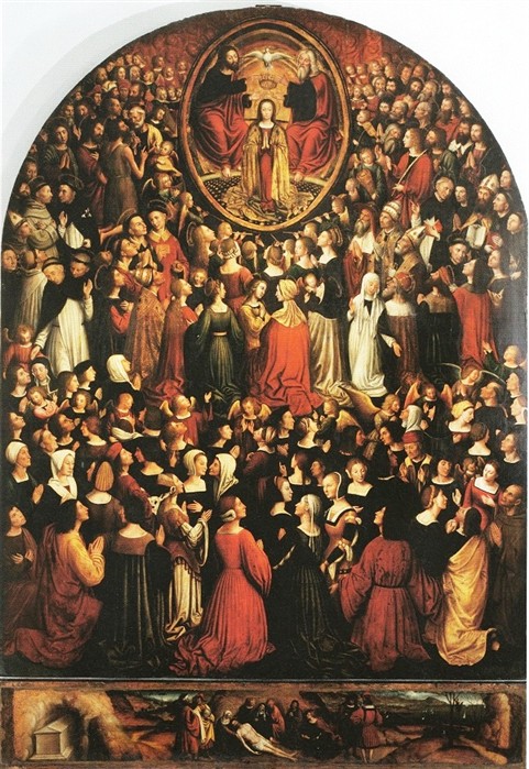 Ludovico Brea (Nissa, c. 1450 - c. 1522-1525), Omnes sancti IT Pala di Ognissanti, 1513, Genova, Museo della chiesa di Santa Maria di Castello. Oleo in ligno, 260×202 cm. |