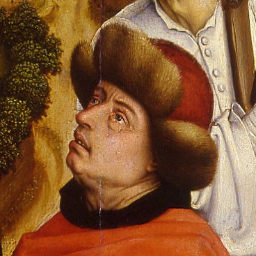 Rogier van der Weyden (Tournai, 1399/1400 – Bruxelles, 1464), Effígies a se ipso picta — In Tríptycha Crucifixiónis « Tríptycha Abegg », c. 1438-1440, Riggisberg (apud Bern), Abegg-Stiftung, Inv. nr. 14.2.63. |