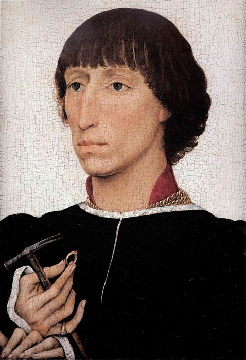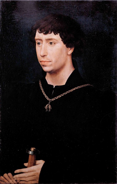 Rogier van der Weyden (Tournai, 1399/1400 – Bruxelles, 1464), Charles le Téméraire effígies, c. 1461-1462, Berlin, Staatliche Museen zu Berlin, Inv. 545. Quércea tábula, 50,9×33,6 cm. |