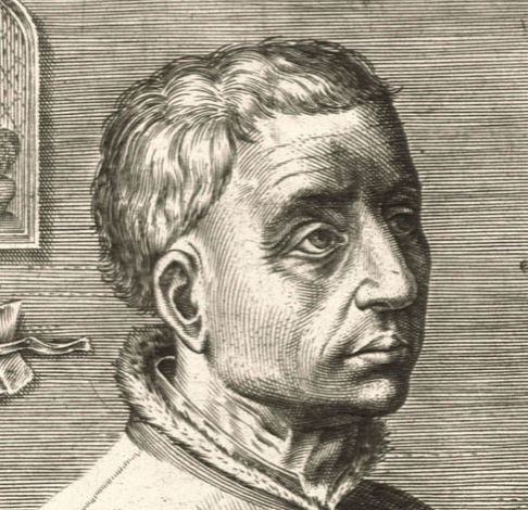 Effígies Rogier van der Weyden attribúta ad Johannes (Jan) Wierix, incísio, in Domínicus Lampsonius, Pictórum áliquot Germániæ Inferióris Effigies, 1572. — Liber (Courtauld). |