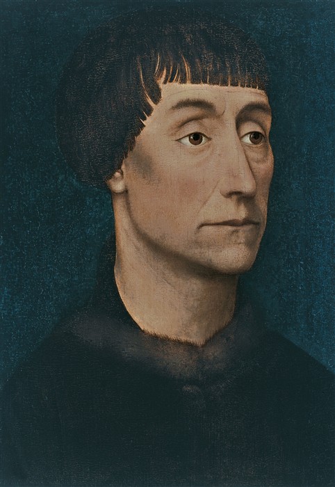 Rogier van der Weyden (Tournai, 1399/1400 – Bruxelles, 1464), Charles le Téméraire effígies, c. 1461-1462, Berlin, Staatliche Museen zu Berlin, Inv. 545. Quércea tábula, 50,9×33,6 cm. |